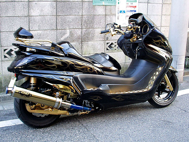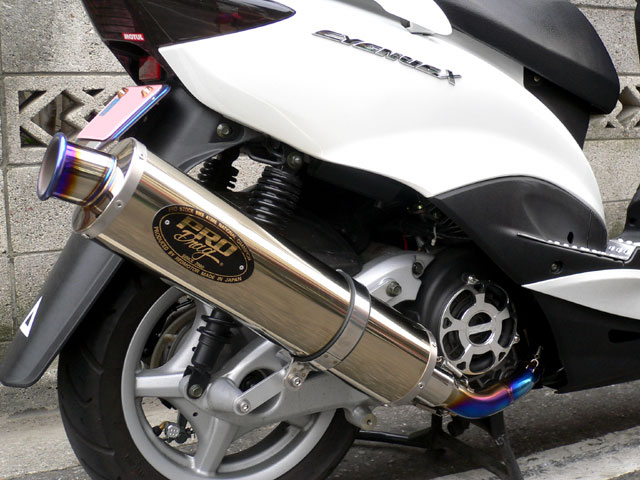 通勤用セカンドバイクとして人気の125を本格的にパワーチューン。ドラック譲りのパワー型チタンサイレンサーはZZR−1400、ハヤブサと同型のタイプで、ドラッグレースでの使用も前提に200馬力以上の大出力に対応するサイレンサーを採用。156CC、250CCにボアーアップ時にマフラーの容量不足による、パワーダウン等の心配も一切不要でエンジンの持つポテンシャルを限界まで引き出す唯一の本格的なマフラーなのです。ボアーアップ、ハイカム等でパワーアップしたエンジンはワンランク上の250CCと同等の走りを可能にしてます。又、レースではNOS「ナイトラス燃料噴射出力増強装置」の仕様により、爆発的なパワー得たシグナスは、キャラリーに驚きと感動を与えます。