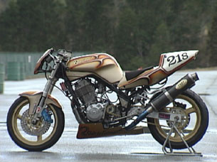 CSテレビ「カーチャンネル」イベントレース専用に製作、600のエンジンに換装しビックキャブを装着、ドラック譲りのパワーを発揮するプロドラッグEXを、この車両の為に開発、圧倒的なパワーとドウカティーを凌ぐ重低音にはスタッフも唖然、足回りも倒立タイプに変更しパワーに対応、