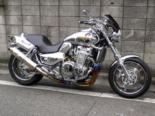 又、各部にメッキパーツ「メッキ処理」を多用したロー&ロングの新たなアメリカンスタイルはマンネリ化したカスタム界に衝撃を与え一世を風靡しました。現在、主流になりつつ有る、メッキパーツ、ロー&ロングのカスタムの真さに原型になった車両です。又、この車両は初めて240タイヤのロー&ロングのスタイルで構造変更車両に合格しました。当時、車検場の二輪コースのテスターに240タイヤが収まらず、検査官を驚かした逸話を残してます。現在でもアメリカンスタイルのファン「ハーレのオーナー」から大好評を頂き、街中やイベントでも同様のスタイルの車両を見かける様になりました。
